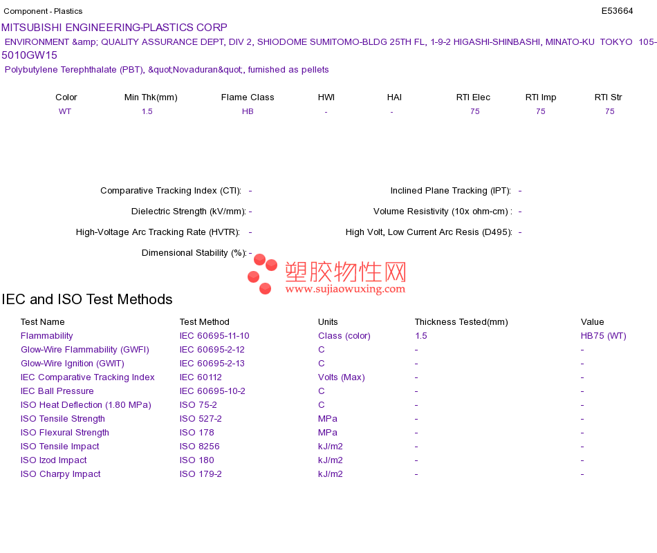 Polybutylene Terephthalate (PBT) 5010GW15UL黄卡资料请登陆会员后查看,如需电子档资料,请联系客服! 赵生:手机13424755533;QQ:27660005