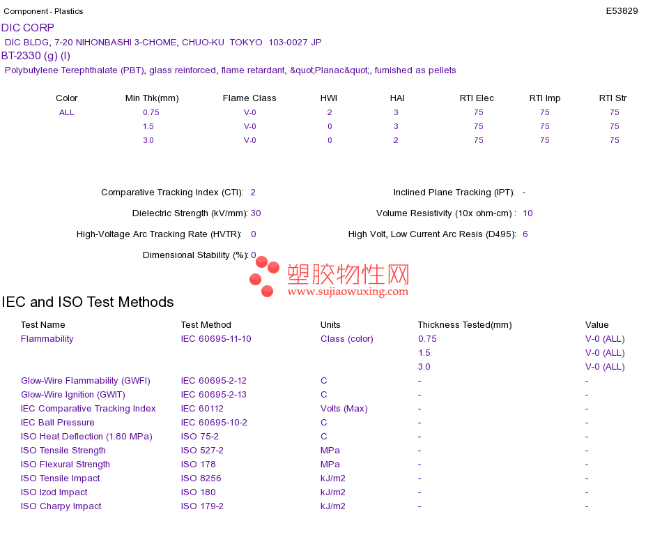 Polybutylene Terephthalate (PBT) BT-2330 (g) (l)UL黄卡资料请登陆会员后查看,如需电子档资料,请联系客服! 赵生:手机13424755533;QQ:27660005
