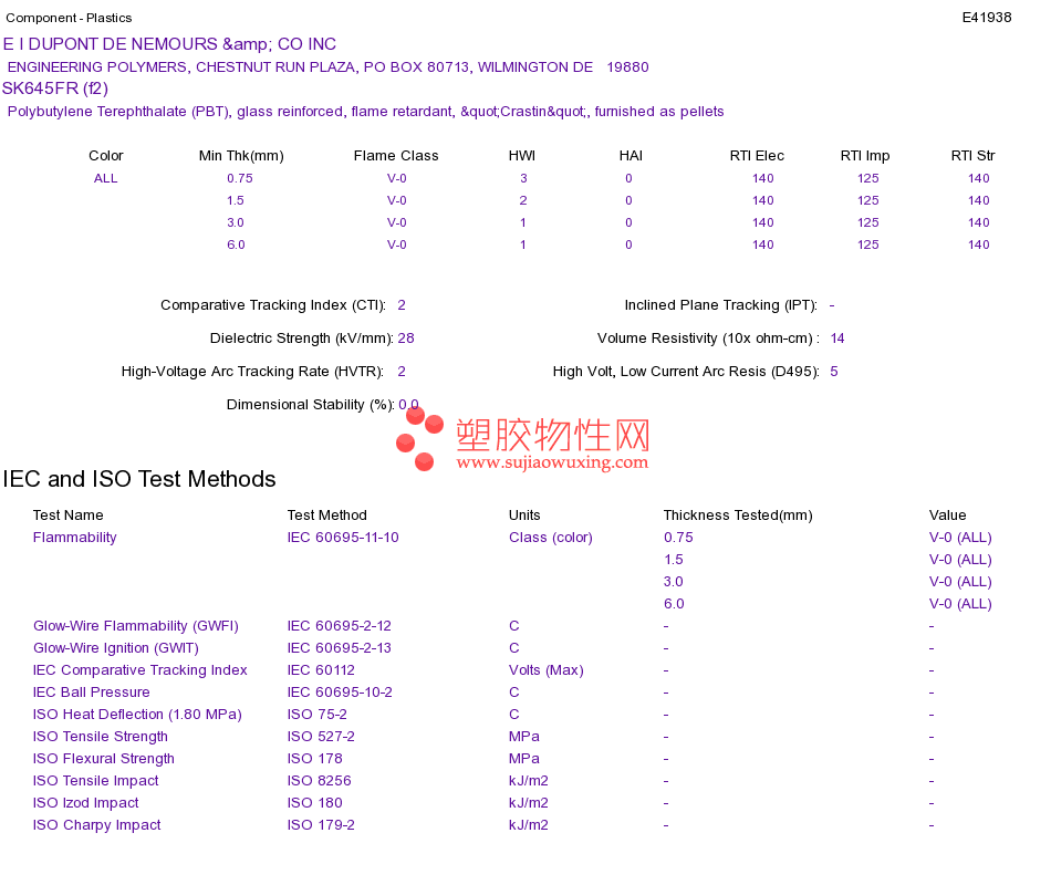 Polybutylene Terephthalate (PBT) SK645FR (f2)UL黄卡资料请登陆会员后查看,如需电子档资料,请联系客服! 赵生:手机13424755533;QQ:27660005