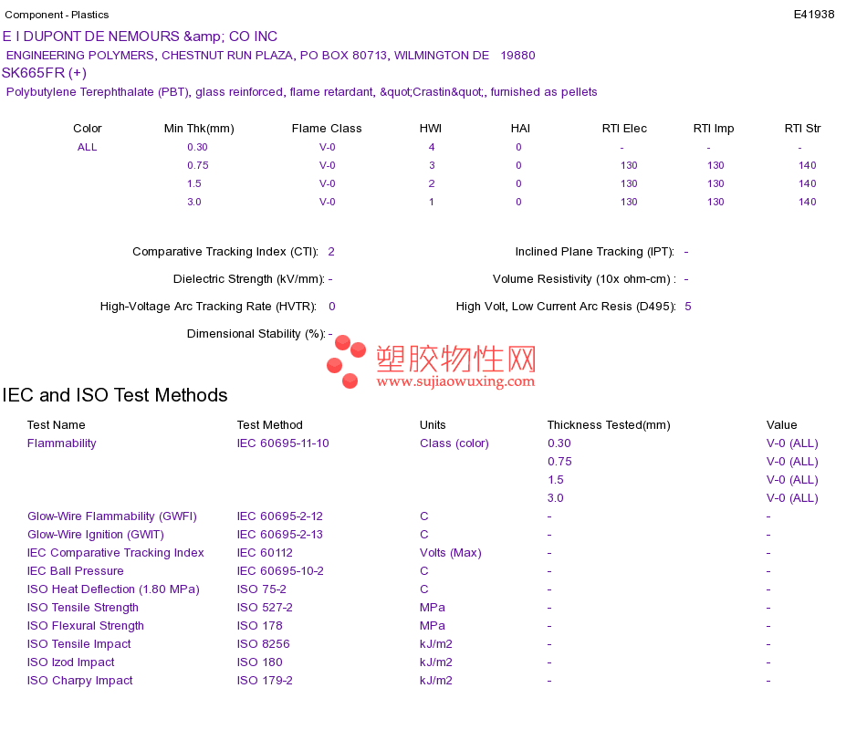 Polybutylene Terephthalate (PBT) SK665FR (+)UL黄卡资料请登陆会员后查看,如需电子档资料,请联系客服! 赵生:手机13424755533;QQ:27660005