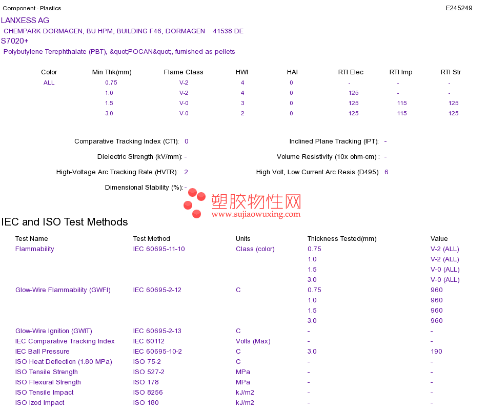 Polybutylene Terephthalate (PBT) S7020+UL黄卡资料请登陆会员后查看,如需电子档资料,请联系客服! 赵生:手机13424755533;QQ:27660005