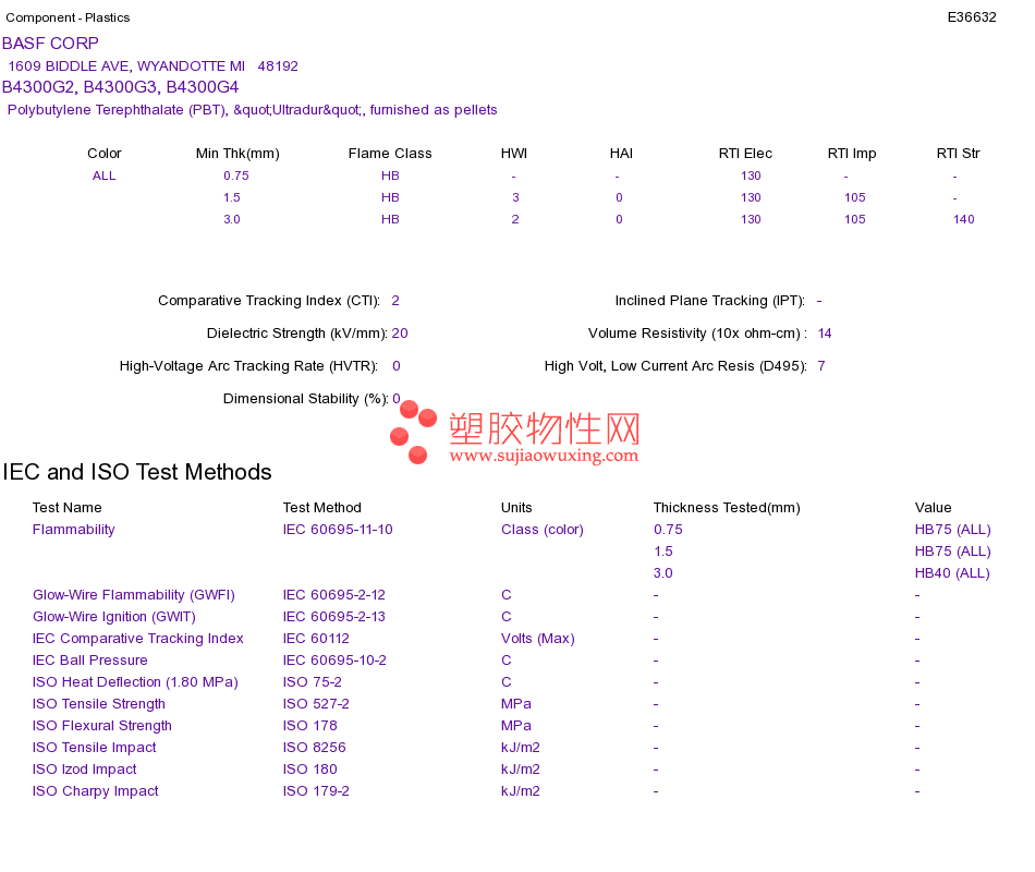 Polybutylene Terephthalate (PBT) B4300G2, B4300G3, B4300G4UL黄卡资料请登陆会员后查看,如需电子档资料,请联系客服! 赵生:手机13424755533;QQ:27660005