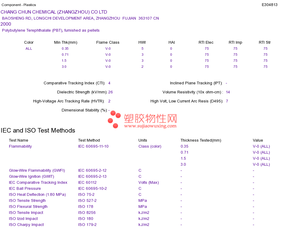 Polybutylene Terephthalate (PBT) 2000UL黄卡资料请登陆会员后查看,如需电子档资料,请联系客服! 赵生:手机13424755533;QQ:27660005