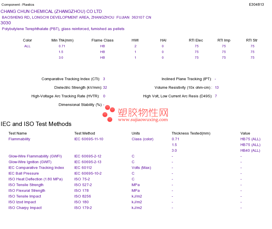 Polybutylene Terephthalate (PBT) 3030UL黄卡资料请登陆会员后查看,如需电子档资料,请联系客服! 赵生:手机13424755533;QQ:27660005