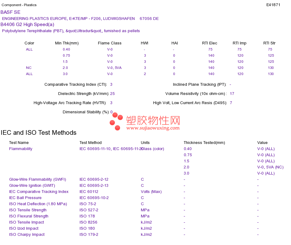 Polybutylene Terephthalate (PBT) B4406 G2 High Speed(a)UL黄卡资料请登陆会员后查看,如需电子档资料,请联系客服! 赵生:手机13424755533;QQ:27660005