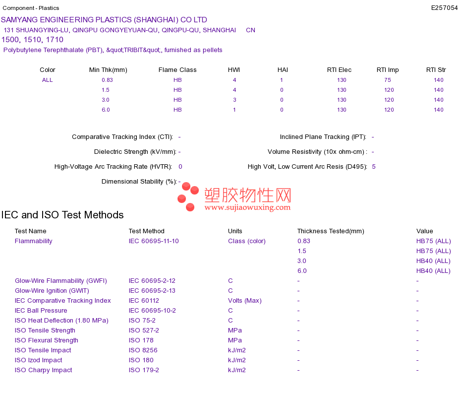 Polybutylene Terephthalate (PBT) 1500, 1510, 1710UL黄卡资料请登陆会员后查看,如需电子档资料,请联系客服! 赵生:手机13424755533;QQ:27660005