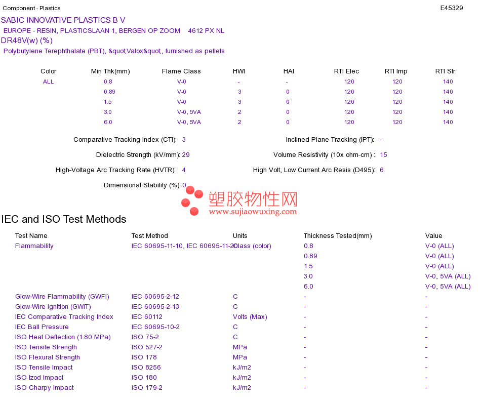 Polybutylene Terephthalate (PBT) DR48V(w) (%)UL黄卡资料请登陆会员后查看,如需电子档资料,请联系客服! 赵生:手机13424755533;QQ:27660005