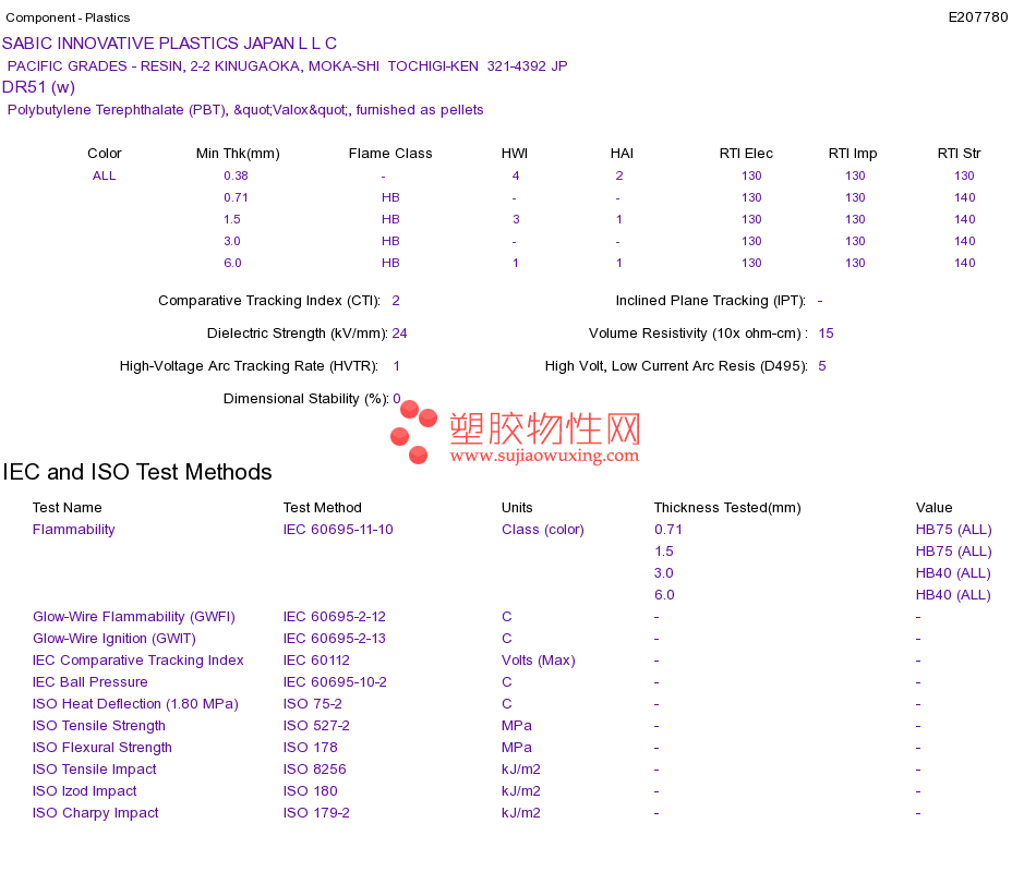 Polybutylene Terephthalate (PBT) DR51 (w)UL黄卡资料请登陆会员后查看,如需电子档资料,请联系客服! 赵生:手机13424755533;QQ:27660005