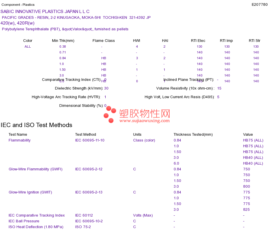 Polybutylene Terephthalate (PBT) 420(w), 420R(w)UL黄卡资料请登陆会员后查看,如需电子档资料,请联系客服! 赵生:手机13424755533;QQ:27660005