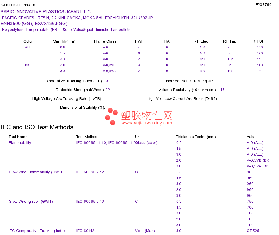 Polybutylene Terephthalate (PBT) ENH3500 (GG), EXVX1363(GG)UL黄卡资料请登陆会员后查看,如需电子档资料,请联系客服! 赵生:手机13424755533;QQ:27660005