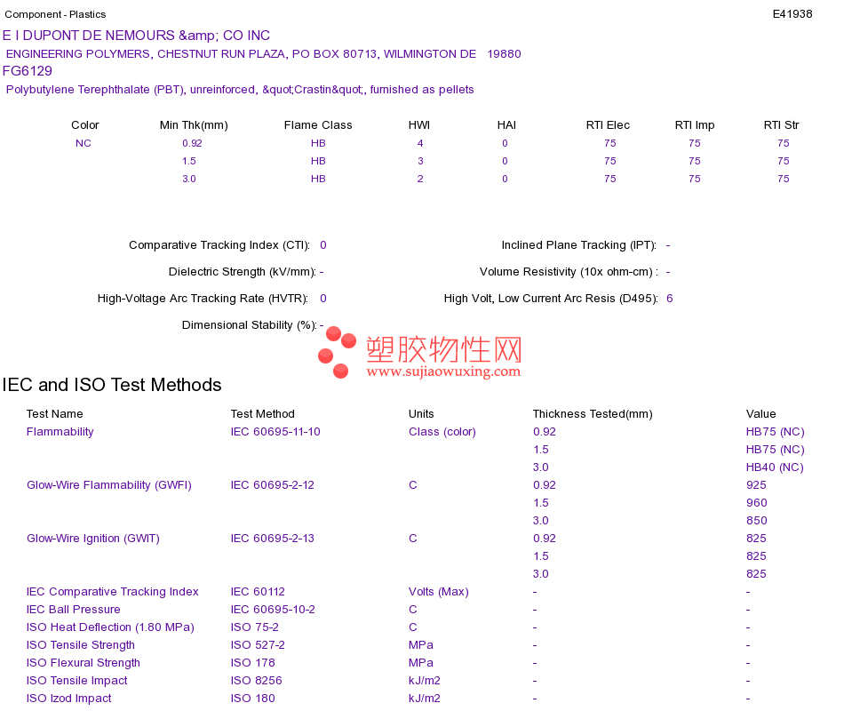 Polybutylene Terephthalate (PBT) FG6129UL黄卡资料请登陆会员后查看,如需电子档资料,请联系客服! 赵生:手机13424755533;QQ:27660005