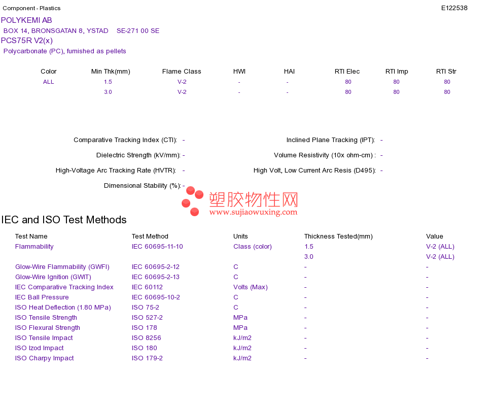 Polycarbonate (PC) PCS75R V2(x)UL黄卡资料请登陆会员后查看,如需电子档资料,请联系客服! 赵生:手机13424755533;QQ:27660005