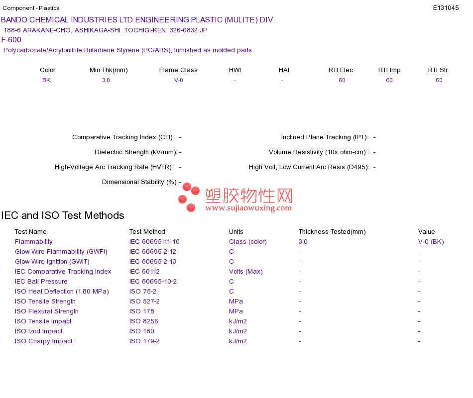 Polycarbonate/Acrylonitrile Butadiene Styrene (PC/ABS) F-600UL黄卡资料请登陆会员后查看,如需电子档资料,请联系客服! 赵生:手机13424755533;QQ:27660005