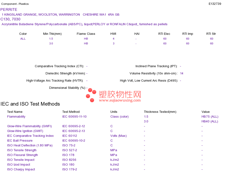 Acrylonitrile Butadiene Styrene/Polycarbonate (ABS/PC) C130, 7030UL黄卡资料请登陆会员后查看,如需电子档资料,请联系客服! 赵生:手机13424755533;QQ:27660005