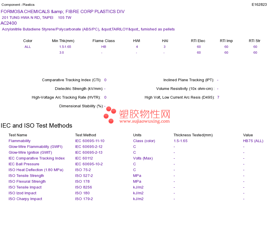 Acrylonitrile Butadiene Styrene/Polycarbonate (ABS/PC) AC2400UL黄卡资料请登陆会员后查看,如需电子档资料,请联系客服! 赵生:手机13424755533;QQ:27660005