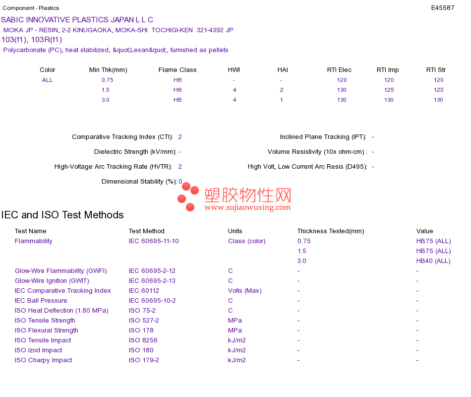 Polycarbonate (PC) 103(f1), 103R(f1)UL黄卡资料请登陆会员后查看,如需电子档资料,请联系客服! 赵生:手机13424755533;QQ:27660005