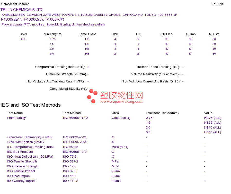 Polycarbonate (PC) T-1000(aa1), T-1000Q(#), T-1000R(#)UL黄卡资料请登陆会员后查看,如需电子档资料,请联系客服! 赵生:手机13424755533;QQ:27660005