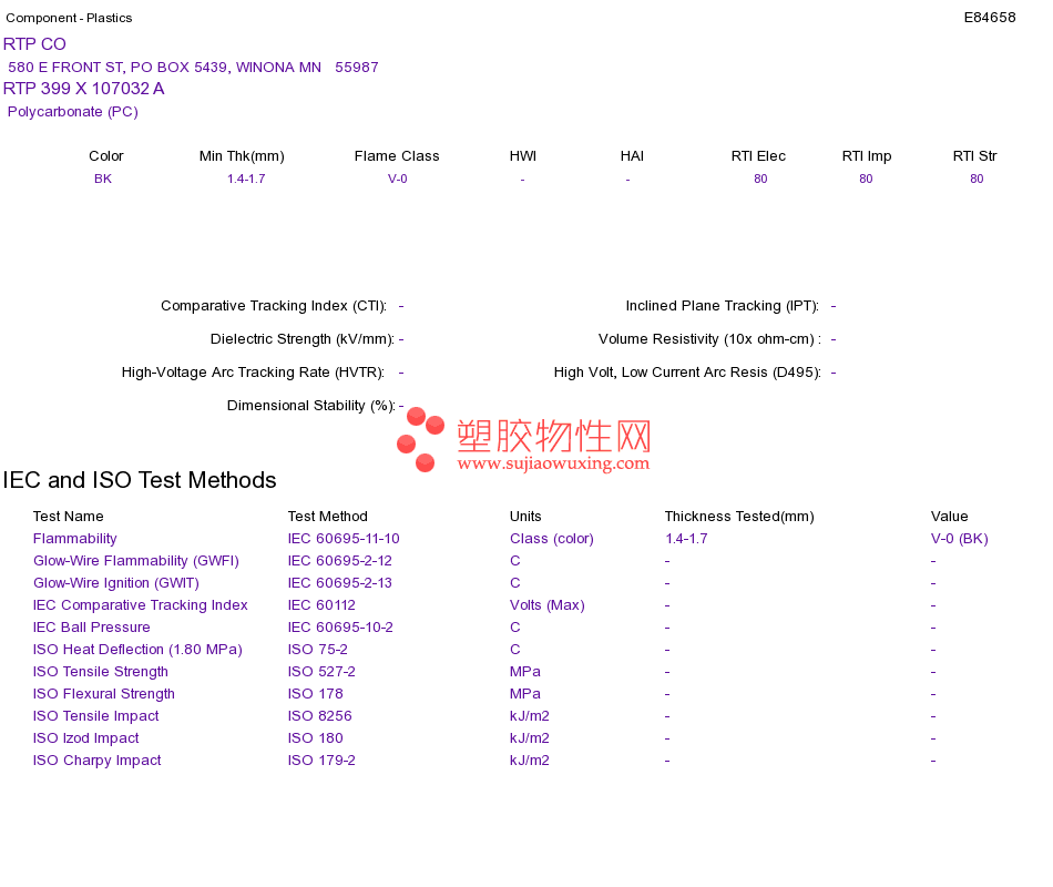 Polycarbonate (PC) RTP 399 X 107032 A UL黄卡