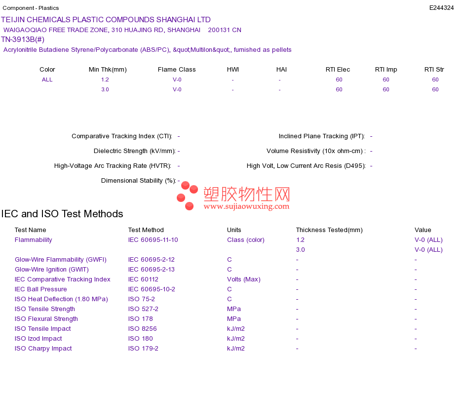 Acrylonitrile Butadiene Styrene/Polycarbonate (ABS/PC) TN-3913B(#)UL黄卡资料请登陆会员后查看,如需电子档资料,请联系客服! 赵生:手机13424755533;QQ:27660005