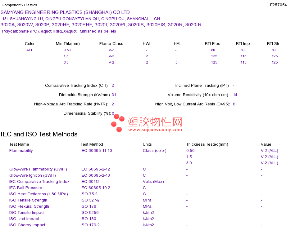 Polycarbonate (PC) 3020A, 3020W, 3020P, 3020HF, 3020PHF, 3020I, 3020PI, 3020IS, 3020PIS, 3020R, 3020IRUL黄卡资料请登陆会员后查看,如需电子档资料,请联系客服! 赵生:手机13424755533;QQ:27660005