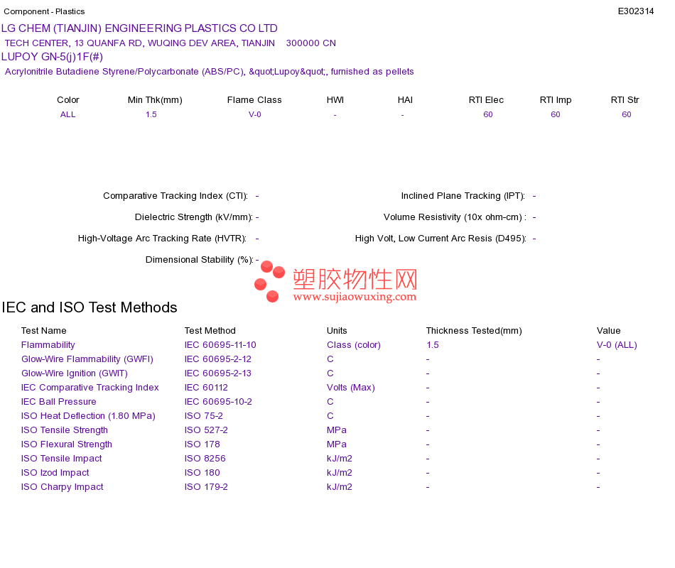 Acrylonitrile Butadiene Styrene/Polycarbonate (ABS/PC) LUPOY GN-5(j)1F(#)&n