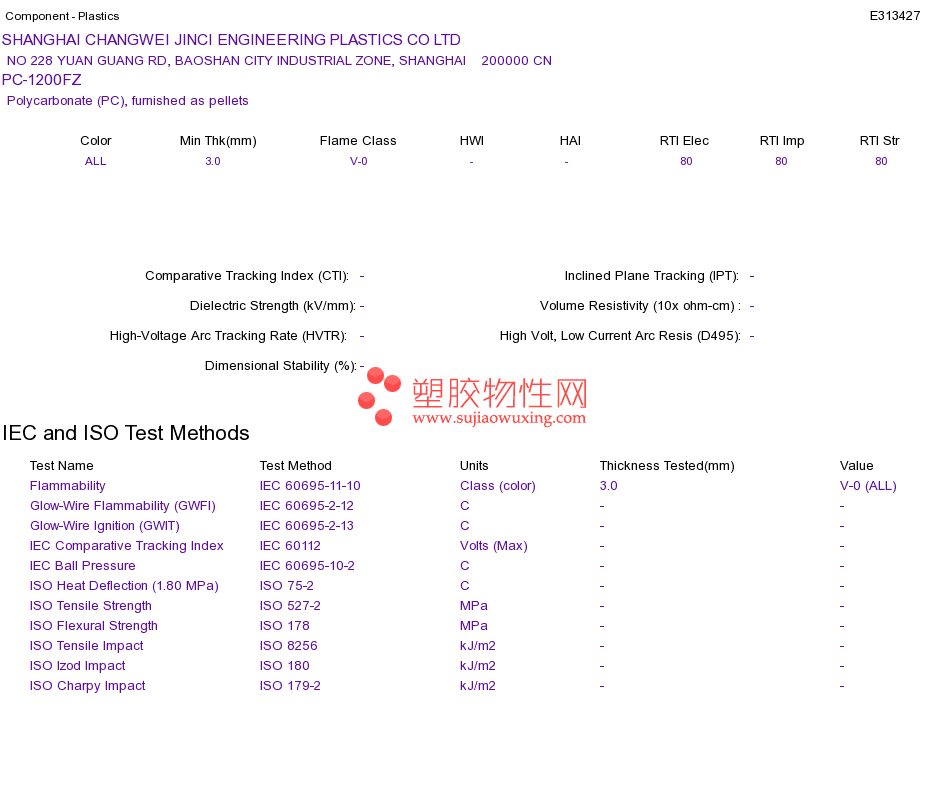 Cheng Yu PC/PET E500G10物性表
