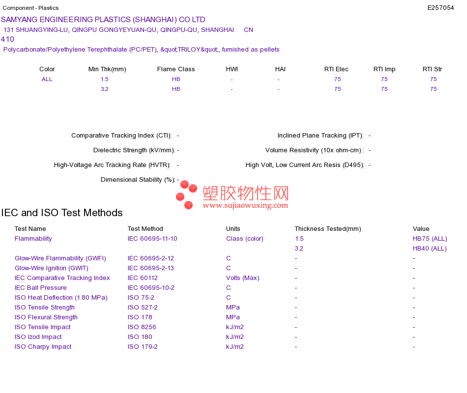 Polycarbonate/Polyethylene Terephthalate (PC/PET) 410UL黄卡资料请登陆会员后查看,如需电子档资料,请联系客服! 赵生:手机13424755533;QQ:27660005