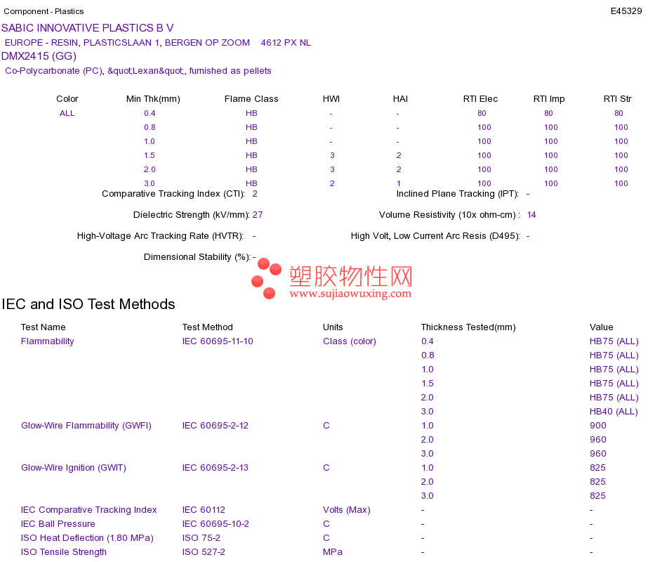 Co-Polycarbonate (PC) DMX2415 (GG)UL黄卡资料请登陆会员后查看,如需电子档资料,请联系客服! 赵生:手机13424755533;QQ:27660005
