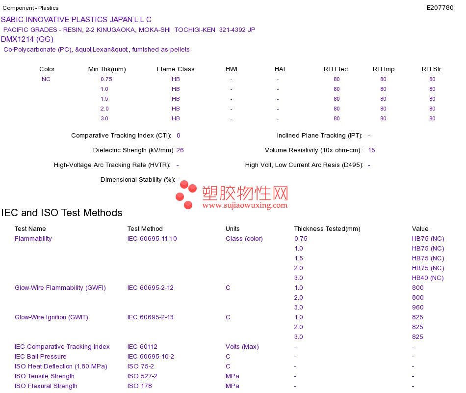 | Ekalon PC 14 E I S 物性表 |