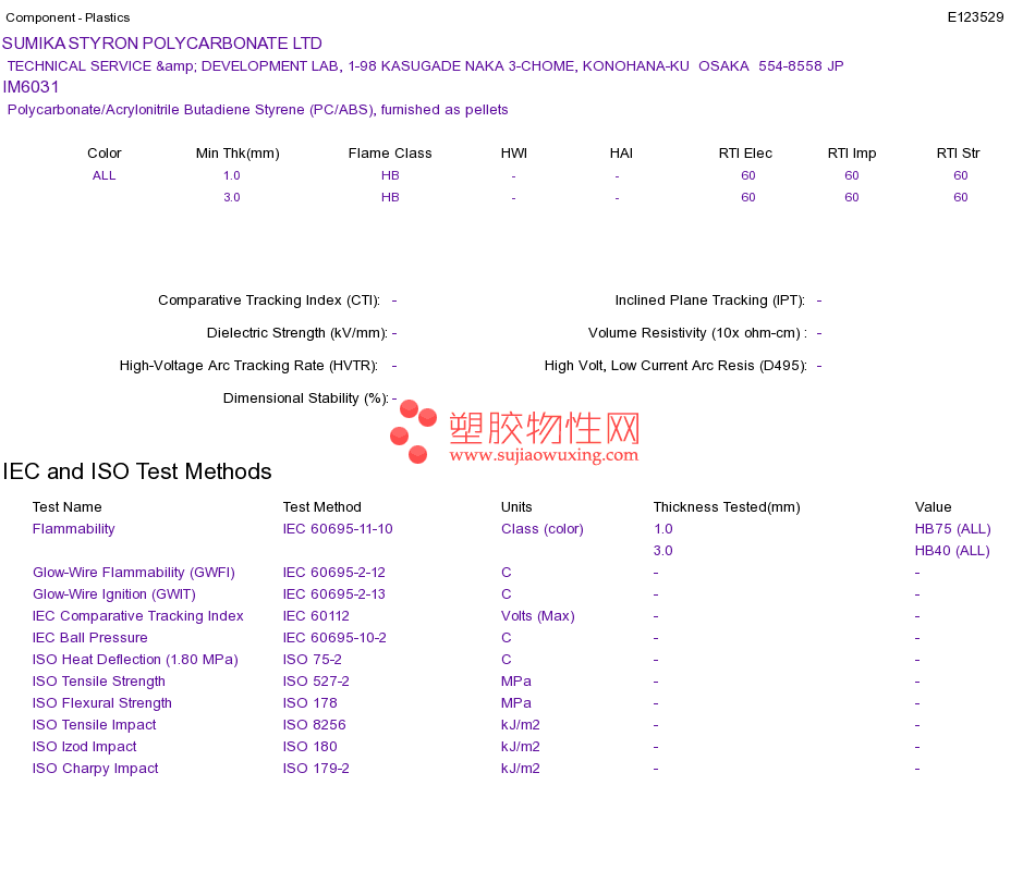 Polycarbonate/Acrylonitrile Butadiene Styrene (PC/ABS) IM6031UL黄卡资料请登陆会员后查看,如需电子档资料,请联系客服! 赵生:手机13424755533;QQ:27660005