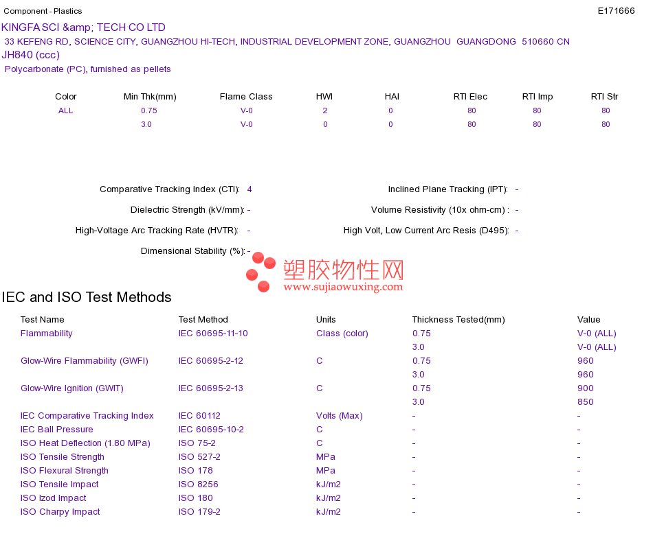 Polycarbonate (PC) JH840 (ccc)UL黄卡资料请登陆会员后查看,如需电子档资料,请联系客服! 赵生:手机13424755533;QQ:27660005