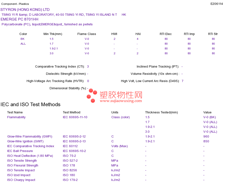 Polycarbonate (PC) EMERGE PC 8701HHUL黄卡资料请登陆会员后查看,如需电子档资料,请联系客服! 赵生:手机13424755533;QQ:27660005