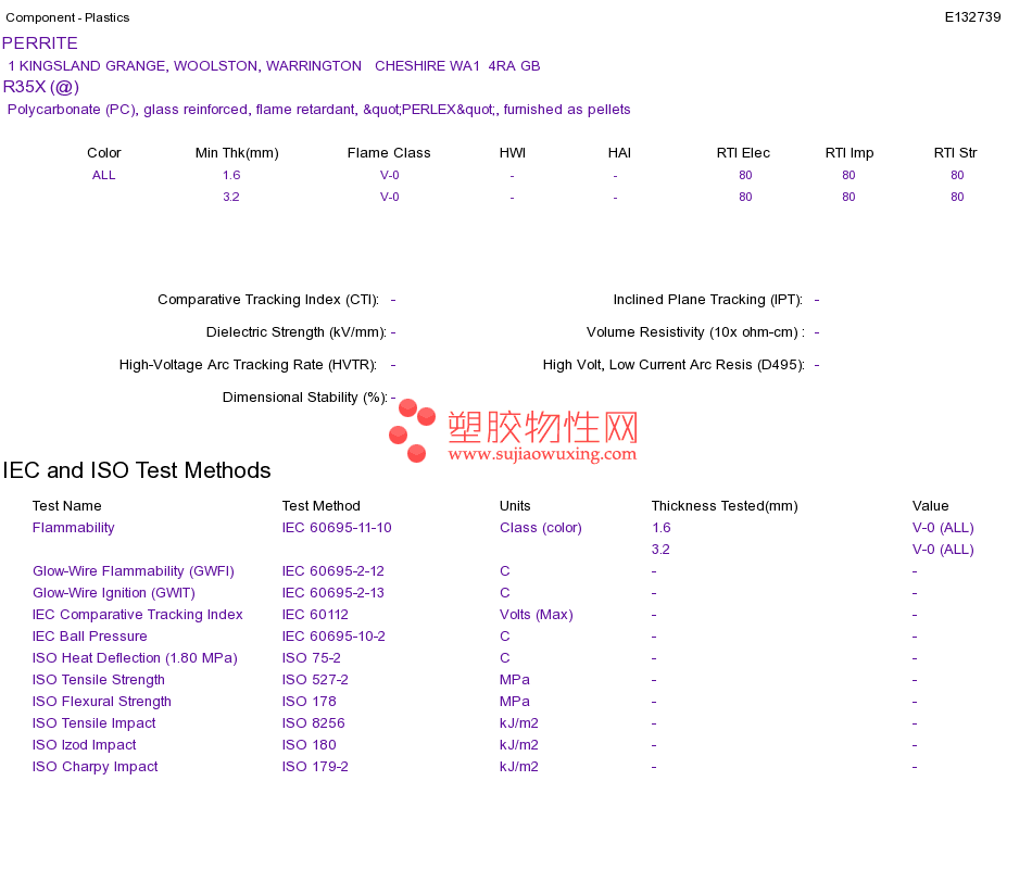 Polycarbonate (PC) R35X (@)UL黄卡资料请登陆会员后查看,如需电子档资料,请联系客服! 赵生:手机13424755533;QQ:27660005