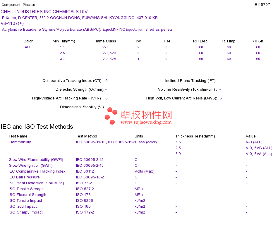 Acrylonitrile Butadiene Styrene/Polycarbonate (ABS/PC) VB-1107(+)UL黄卡资料请登陆会员后查看,如需电子档资料,请联系客服! 赵生:手机13424755533;QQ:27660005