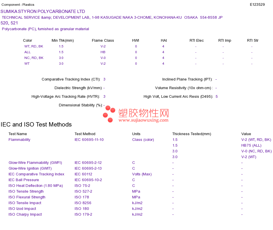 Polycarbonate (PC) 520, 521UL黄卡资料请登陆会员后查看,如需电子档资料,请联系客服! 赵生:手机13424755533;QQ:27660005