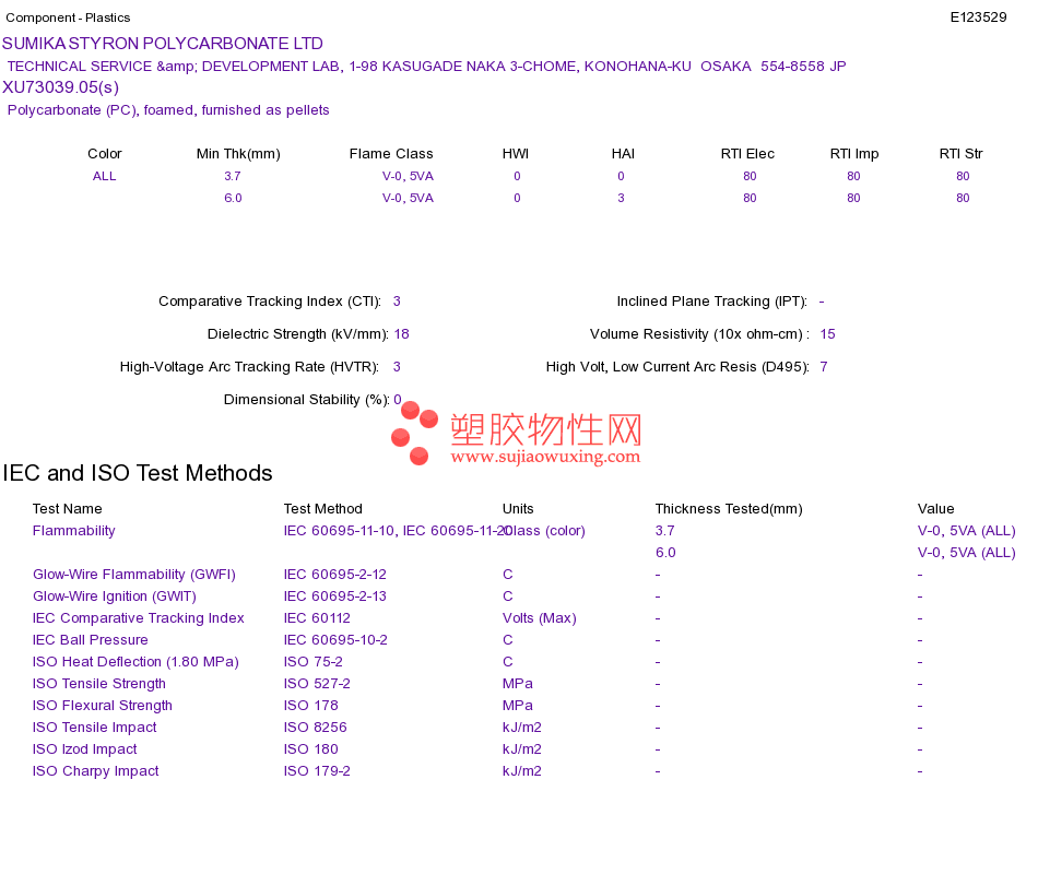 Polycarbonate (PC) XU73039.05(s)UL黄卡资料请登陆会员后查看,如需电子档资料,请联系客服! 赵生:手机13424755533;QQ:27660005