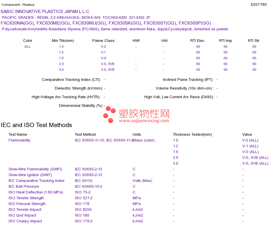 Polycarbonate/Acrylonitrile Butadiene Styrene (PC/ABS) FXC630MA(GG), FXC630ME(GG), FXC630MU(GG), FXC630SK(GG), FXC630ST(GG), FXC630SP(GG)UL黄卡资料请登陆会员后查看,如需电子档资料,请联系客服! 赵生:手机13424755533;QQ:27660005