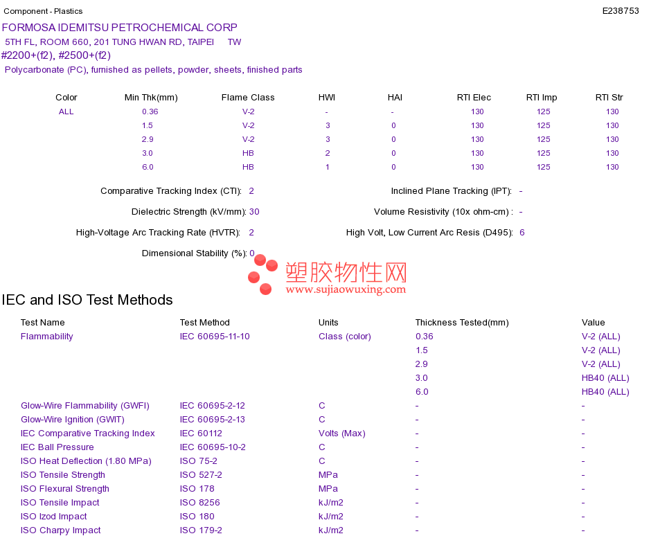 Polycarbonate (PC) #2200+(f2), #2500+(f2)UL黄卡资料请登陆会员后查看,如需电子档资料,请联系客服! 赵生:手机13424755533;QQ:27660005
