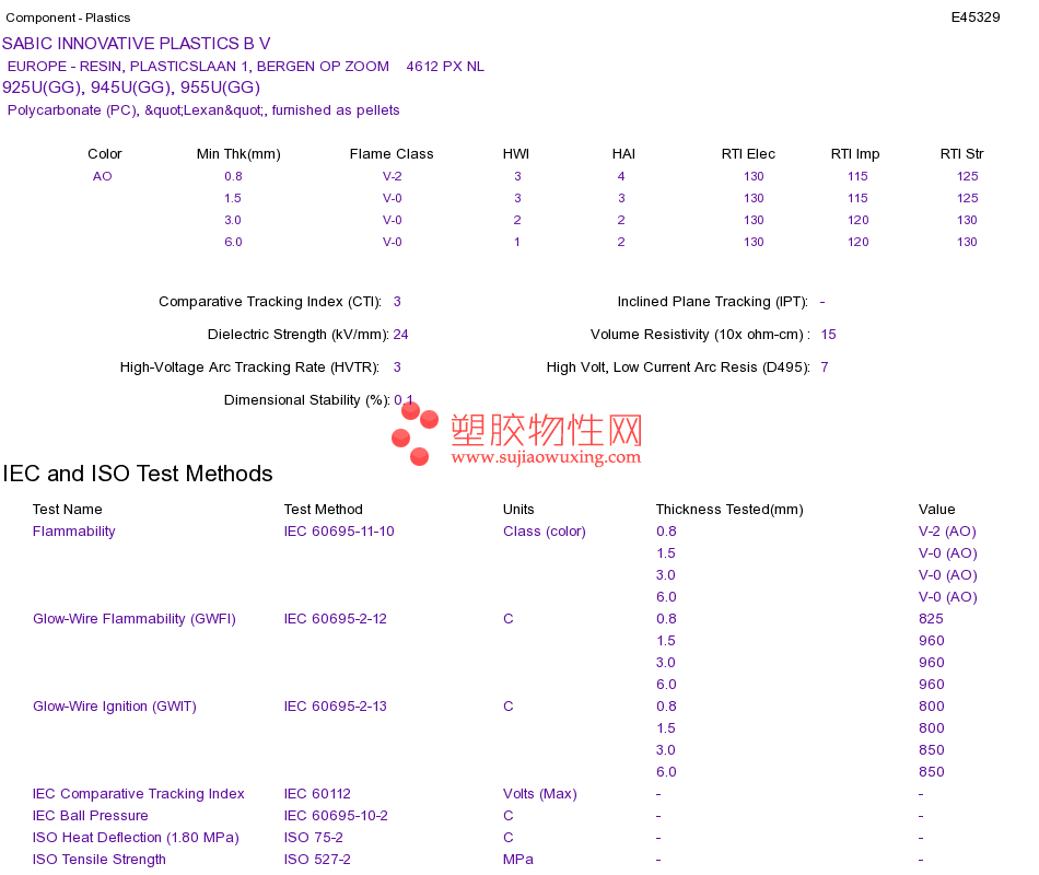 Polycarbonate (PC) 925U(GG), 945U(GG), 955U(GG)UL黄卡资料请登陆会员后查看,如需电子档资料,请联系客服! 赵生:手机13424755533;QQ:27660005