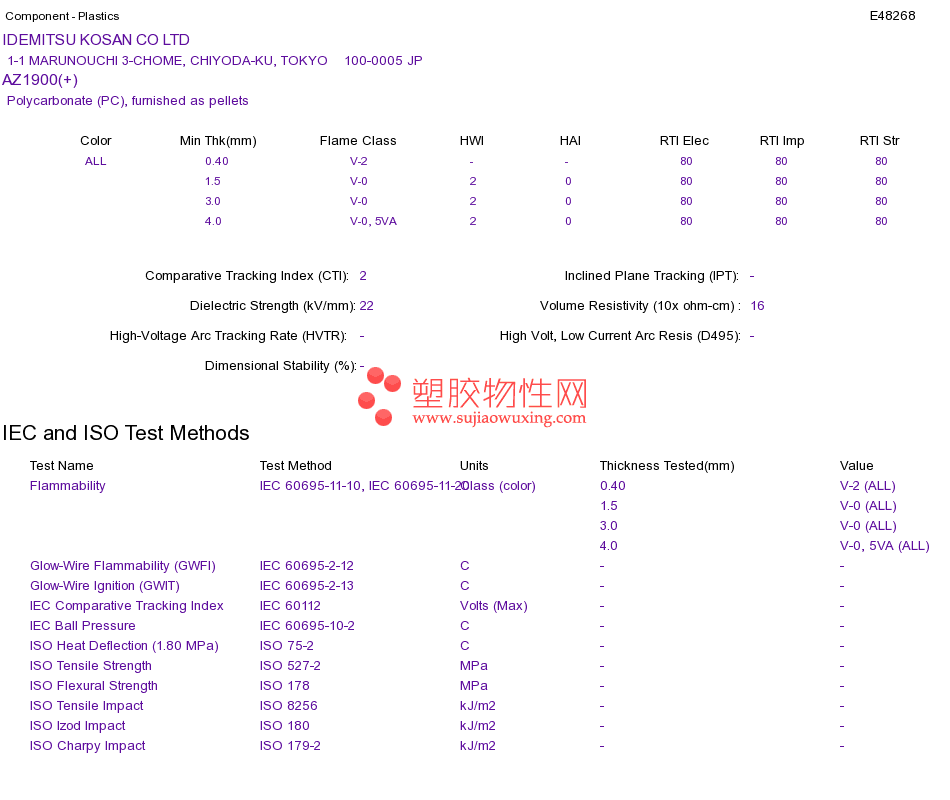 Polycarbonate (PC) AZ1900(+)UL黄卡资料请登陆会员后查看,如需电子档资料,请联系客服! 赵生:手机13424755533;QQ:27660005