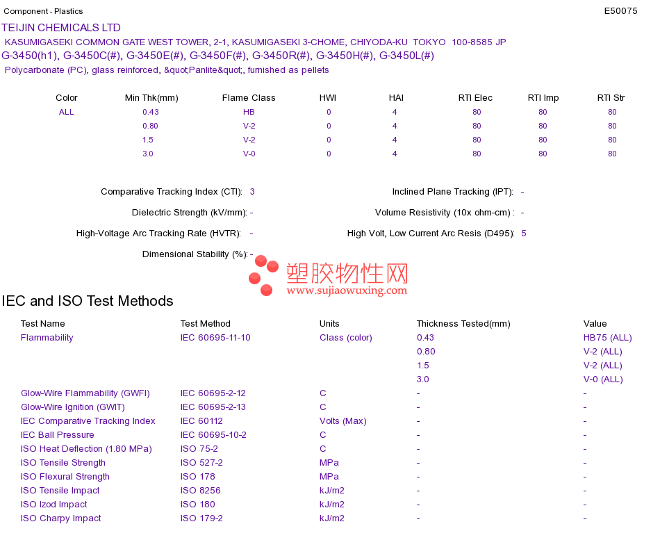 Polycarbonate (PC) G-3450(h1), G-3450C(#), G-3450E(#), G-3450F(#), G-3450R(#), G-3450H(#), G-3450L(#)UL黄卡资料请登陆会员后查看,如需电子档资料,请联系客服! 赵生:手机13424755533;QQ:27660005