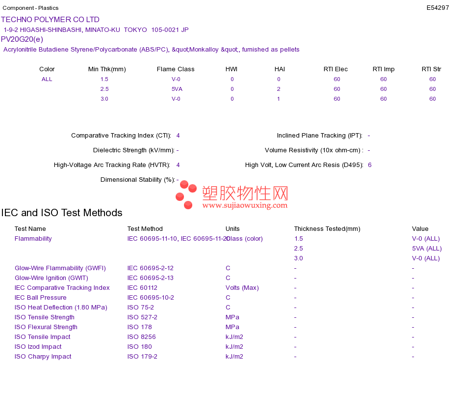 Acrylonitrile Butadiene Styrene/Polycarbonate (ABS/PC) PV20G20(e)UL黄卡资料请登陆会员后查看,如需电子档资料,请联系客服! 赵生:手机13424755533;QQ:27660005