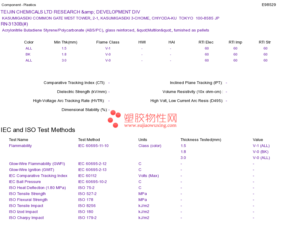 Acrylonitrile Butadiene Styrene/Polycarbonate (ABS/PC) RN-3130B(#)UL黄卡资料请登陆会员后查看,如需电子档资料,请联系客服! 赵生:手机13424755533;QQ:27660005