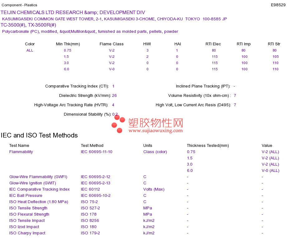 Polycarbonate (PC) TC-3500(#), TX-3500R(#)UL黄卡资料请登陆会员后查看,如需电子档资料,请联系客服! 赵生:手机13424755533;QQ:27660005