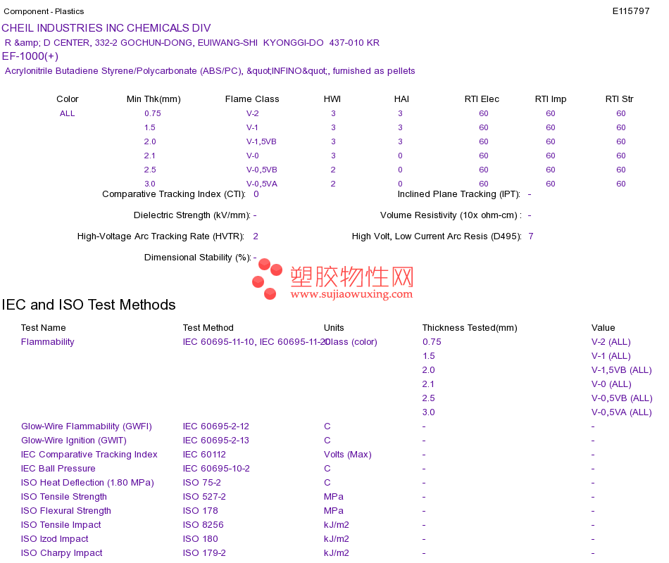 Acrylonitrile Butadiene Styrene/Polycarbonate (ABS/PC) EF-1000(+)UL黄卡资料请登陆会员后查看,如需电子档资料,请联系客服! 赵生:手机13424755533;QQ:27660005