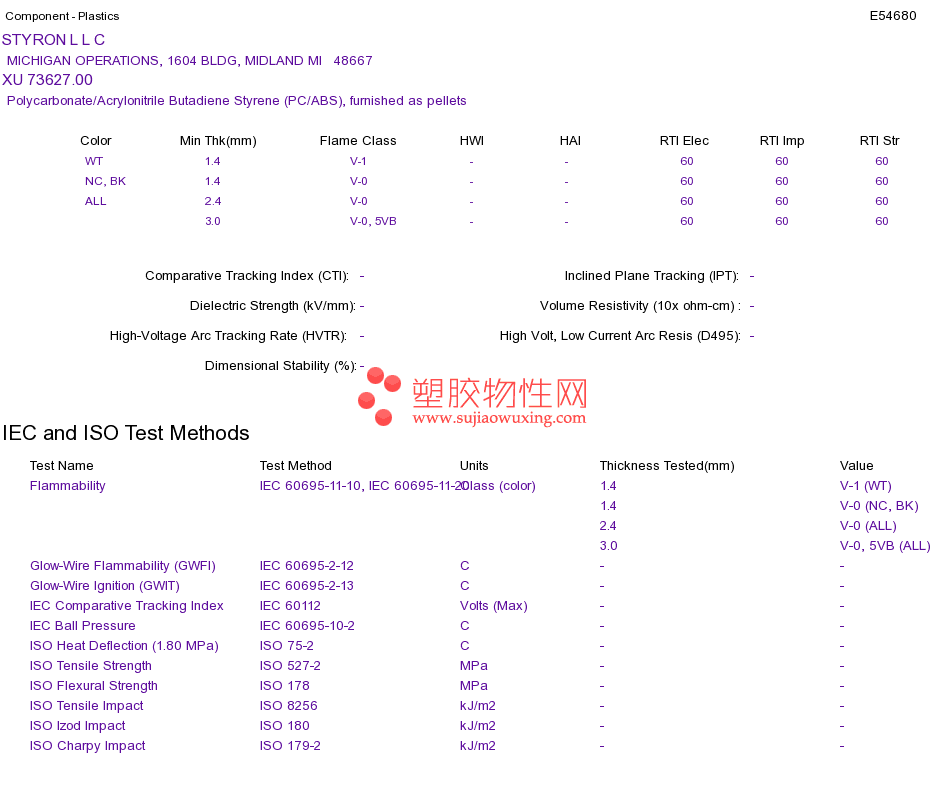Polycarbonate/Acrylonitrile Butadiene Styrene (PC/ABS) XU 73627.00UL黄卡资料请登陆会员后查看,如需电子档资料,请联系客服! 赵生:手机13424755533;QQ:27660005