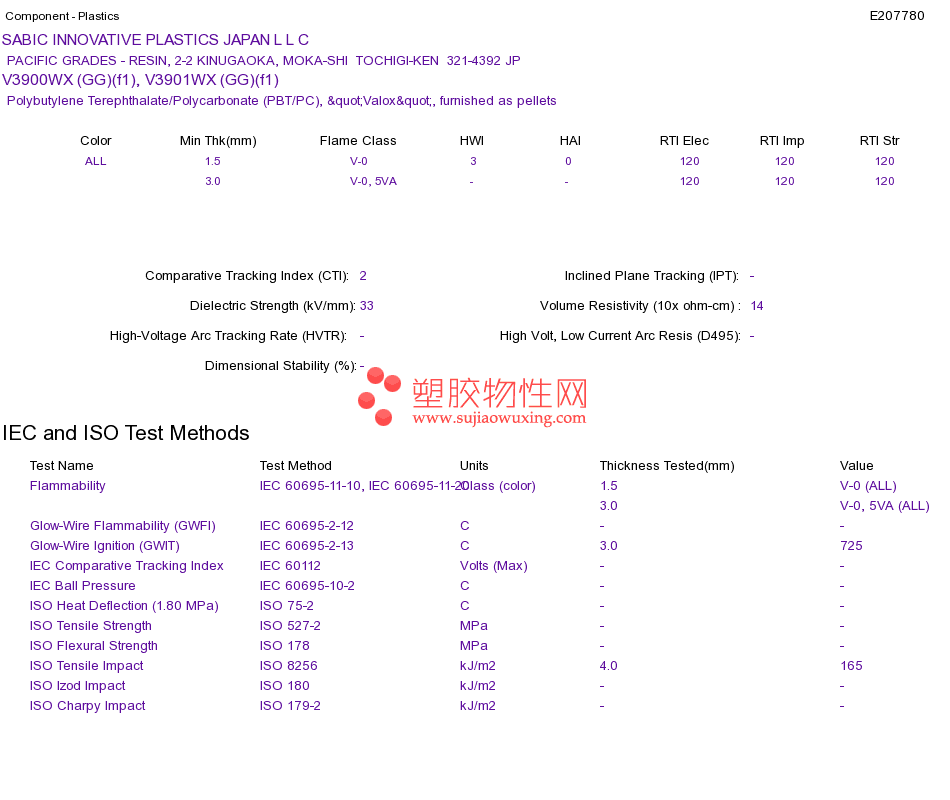 Polybutylene Terephthalate/Polycarbonate (PBT/PC) V3900WX (GG)(f1), V3901WX (GG)(f1)UL黄卡资料请登陆会员后查看,如需电子档资料,请联系客服! 赵生:手机13424755533;QQ:27660005