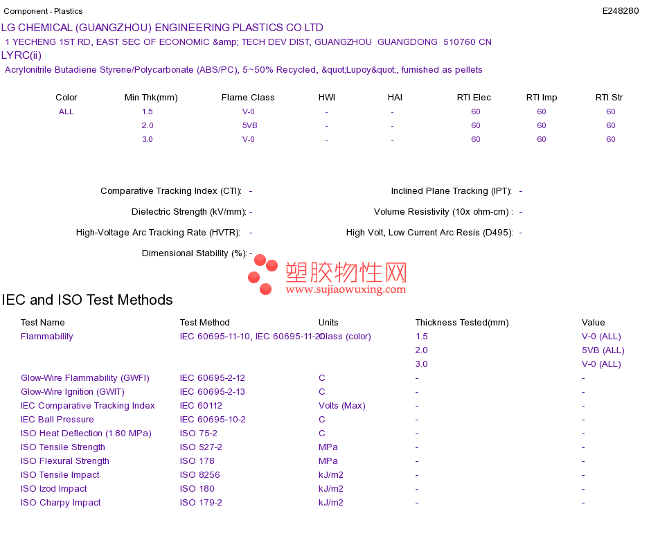 Acrylonitrile Butadiene Styrene/Polycarbonate (ABS/PC) LYRC(ii)UL黄卡资料请登陆会员后查看,如需电子档资料,请联系客服! 赵生:手机13424755533;QQ:27660005