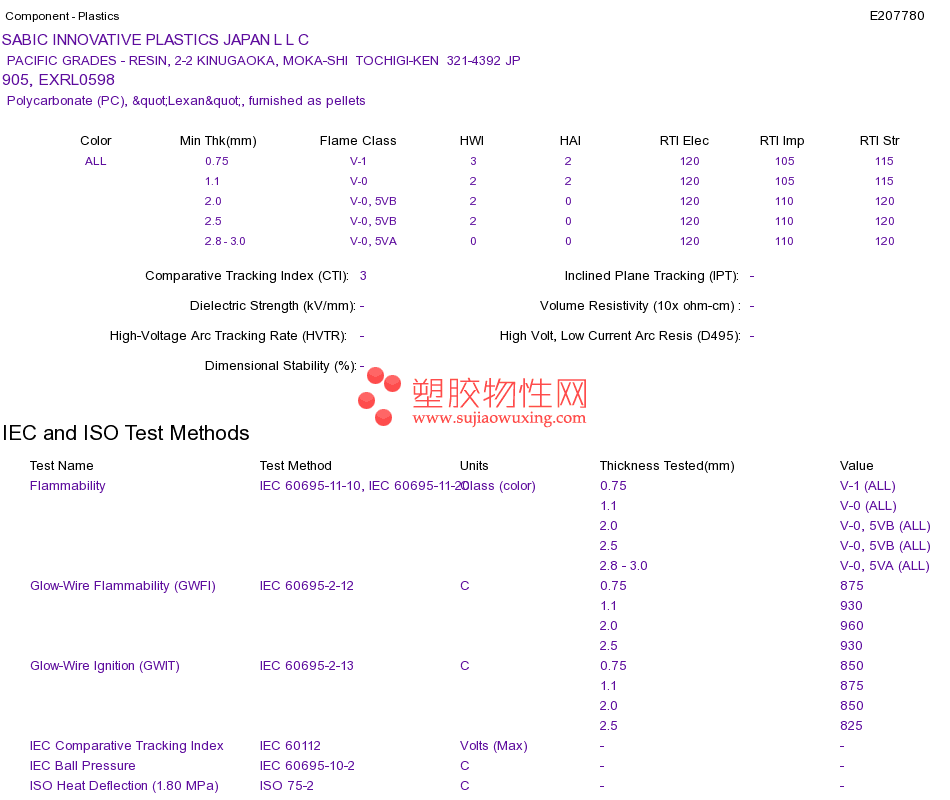 Polycarbonate (PC) 905, EXRL0598UL黄卡资料请登陆会员后查看,如需电子档资料,请联系客服! 赵生:手机13424755533;QQ:27660005