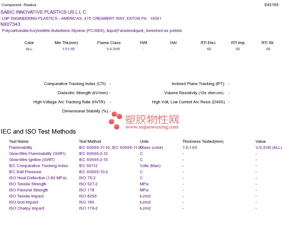 Polycarbonate/Acrylonitrile Butadiene Styrene (PC/ABS) NX07343UL黄卡资料请登陆会员后查看,如需电子档资料,请联系客服! 赵生:手机13424755533;QQ:27660005
